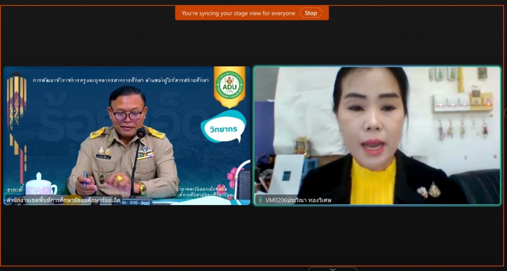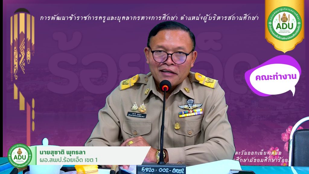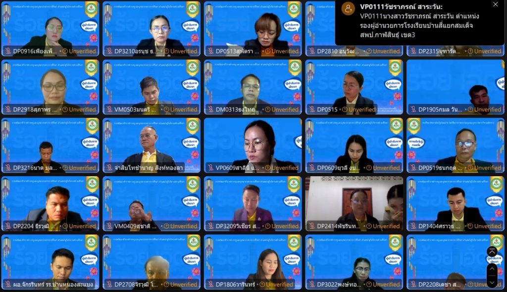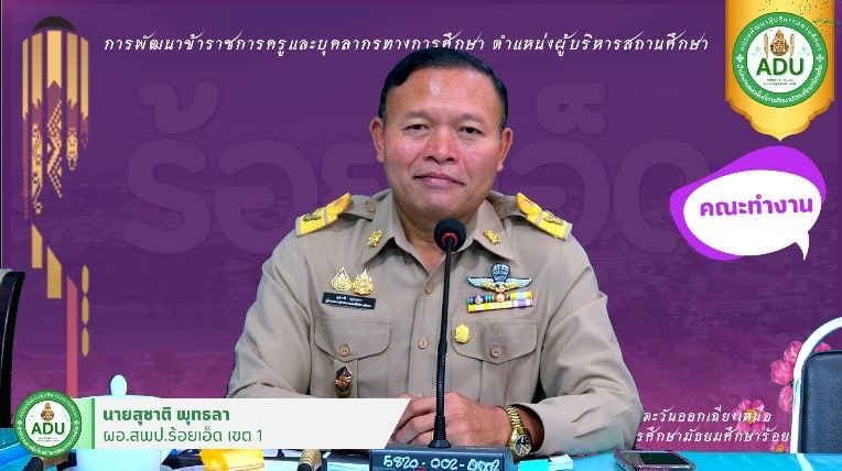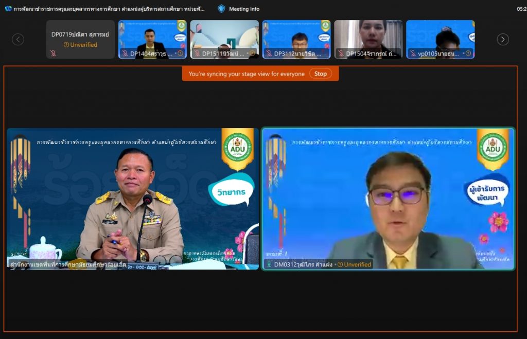 และภายนอกสถานศึกษา ให้กับผู้เข้ารับการพัฒนาข้าราชการครูและบุคลากรทางการศึกษา ตำแหน่งผู้อำนวยการสถานศึกษา และรองผู้อำนวยการสถานศึกษา ในรูปแบบออนไลน์ จำนวนทั้งสิ้น 971 คน ณ ห้องประชุม สพม.ร้อยเอ็ด