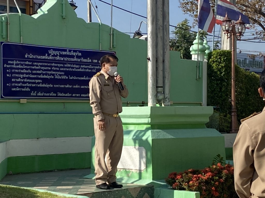 วันจันทร์ที่ 22 กุมภาพันธ์ พ.ศ. 2564 เวลา 08.30 น. นายสุภาพ วงษามาตย์ ผอ.สพป.ร้อยเอ็ด เขต 1 นำข้าราชการครูและบุคลากรทางการศึกษา สังกัด สพป.ร้อยเอ็ด เขต 1 เคารพธงชาติ สวดมนต์ไหว้พระและกล่าวคำปฏิญาณตน “เขตสุจริต” ตามโครงการประเมินคุณธรรมจริยธรรม และความโปร่งใสในการดำเนินงานของสำนักงานเขตพื้นที่การศึกษา (Integrity and Transparency Assessment Online 2020 : ITA Online 2020) ณ สพป.ร้อยเอ็ด เขต 1