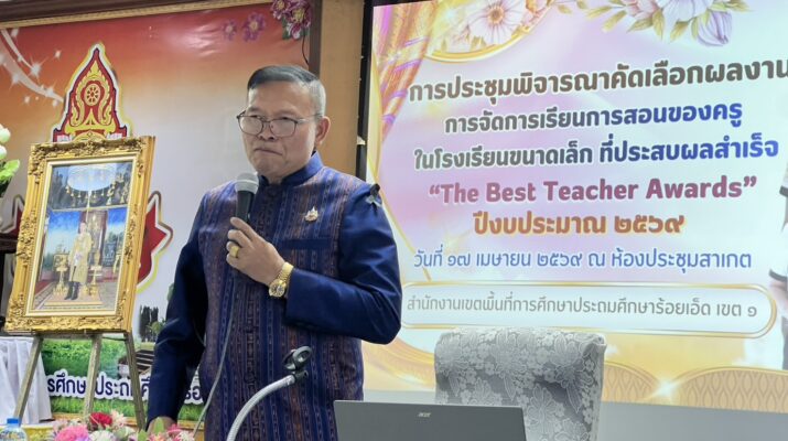 วันศุกร์ที่ 17 เมษายน 2569 เวลา 09.00 น. นายสุชาติ พุทธลา ผู้อำนวยการสำนักงานเขตพื้นที่การศึกษาประถมศึกษาร้อยเอ็ดเขต ๑ มอบนโยบายในการประชุมพิจารณาคัดเลือกผลงานการจัดการเรียนการสอนของครู ในโรงเรียนขนาดเล็ก ที่ประสบผลสำเร็จ “The Best Teacher Awards” ปีงบประมาณ 2569 ซึ่งเป็นการประกวดผลงาน การจัดการเรียนการสอนของครูในโรงเรียนขนาดเล็กที่ประสบผลสำเร็จ Small School Showdown “จุดประกายครู ปลุกพลังสร้างสรรค์ เปิดโลกการเรียนรู้ สู่ห้องเรียนอนาคต” ณ ห้องประชุมสาเกตุ สพป.ร้อยเอ็ด เขต 1