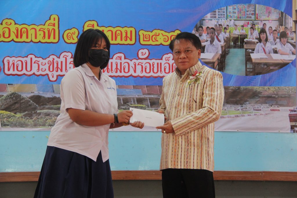 วันที่ 9 มีนาคม 2564 เวลา 09.00 น. นายสุภาพ วงษามาตย์ ผอ.สพป.ร้อยเอ็ด เขต 1 เป็นประธานในการรับมอบทุนการศึกษามูลนิธิเพื่อการศึกษา โรงเรียนเมืองร้อยเอ็ด ประจำปี 2564 ได้มอบทุนการศึกษาให้กับนักเรียน รวมทั้งสิ้นจำนวน 289 ทุน และกล่าวให้โอวาทกับคณะกรรมการมูลนิธิเพื่อการศึกษา ผู้มีจิตศรัทธา คณะครู นักเรียนและแขกผู้มีเกียรติทุกท่าน ณ ห้องประชุมใหญ่ โรงเรียนเมืองร้อยเอ็ด