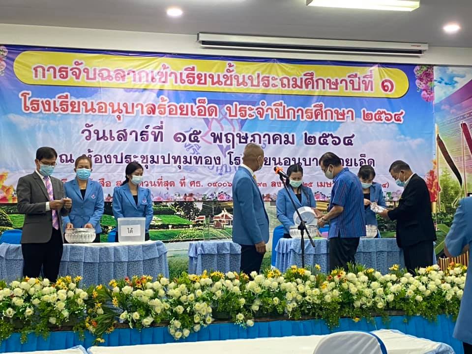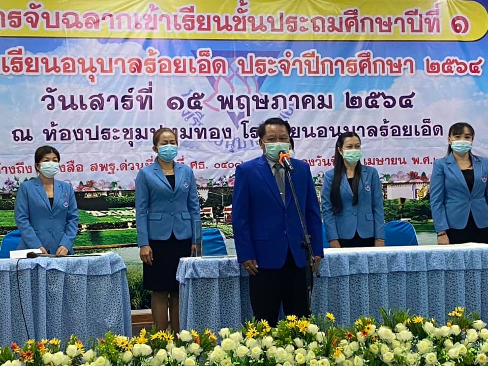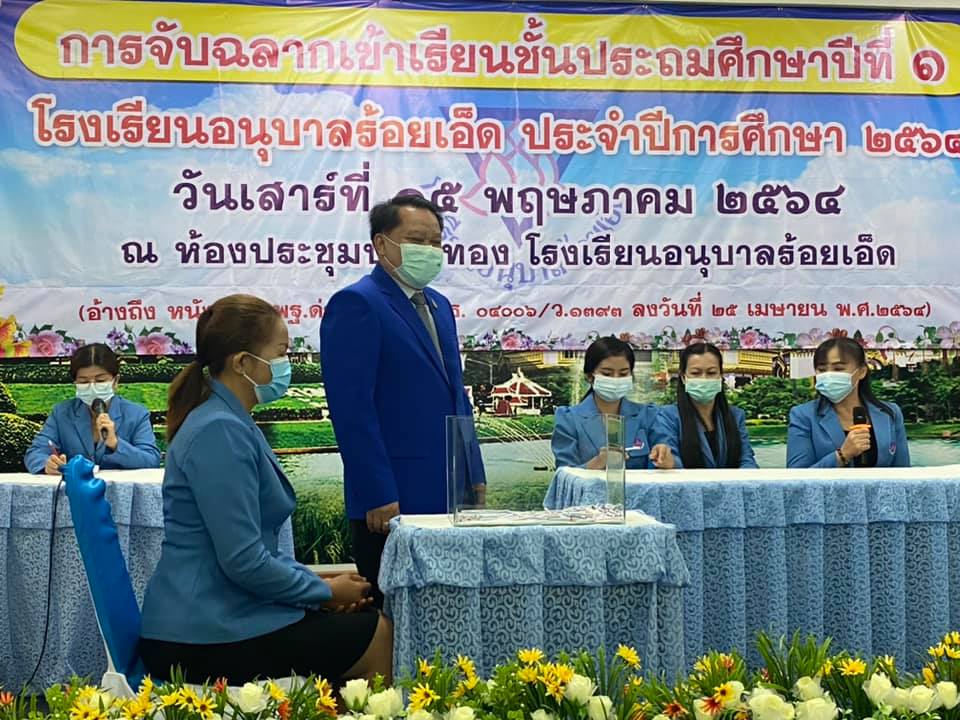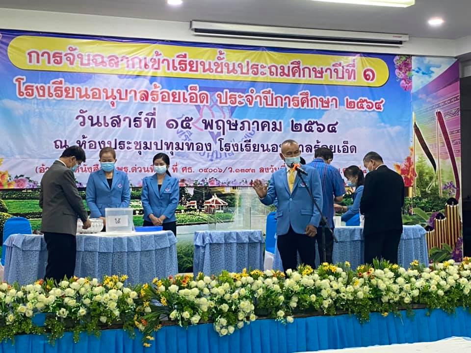 วันที่ 15 พฤษภาคม 2564 นายสุภาพ วงษามาตย์ ผอ.สพป.ร้อยเอ็ด เขต 1 เป็นประธานในการดำเนินการคัดเลือกนักเรียนเข้าเรียนชั้นประถมศึกษาปีที่ ๑ โรงเรียนอนุบาลร้อยเอ็ด ปีการศึกษา 2564 โดยวิธีจับฉลาก ซึ่งเป็นไปตามประกาศการรับนักเรียนทุกประการ และมีการป้องกันการแพร่ระบาคของโรคโควิค 19 ตามมาตรการที่ ศบค. กำหนด รวมทั้งมาตรการของจังหวัดร้อยเอ็ด ณ ห้องประชุมปทุมทอง โรงเรียนอนุบาลร้อยเอ็ด