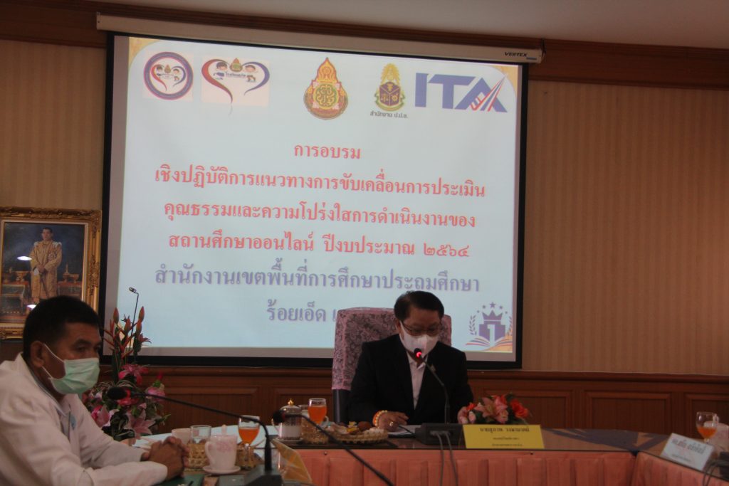 วันที่ 19 กันยายน 2564 นายสุภาพ วงษามาตย์ ผอ.สพป.ร้อยเอ็ด เขต 1 เป็นประธานเปิดการอบรมเชิงปฏิบัติการแนวทางการขับเคลื่อนการประเมินคุณธรรมและความโปร่งใสการดำเนินงานของสถานศึกษาออนไลน์ (Integrity and Transparency Assessment Online : ITA Online) ปีงบประมาณ 2564 ให้แก่ผู้บริหารสถานศึกษาและครูผู้รับผิดชอบการประเมิน ITA ของโรงเรียนคุณภาพประจำตำบล เพื่อปลูกจิตสำนึกให้แก่เยาวชนในการต่อต้านการทุจริตคอร์รับชั่นทุกรูปแบบ และเพื่อให้เกิดการพัฒนา จึงมีการแลกเปลี่ยนเรียนรู้การนำหลักสูตรต้านทุจริตศึกษา (หลักสูตรการศึกษาขั้นพื้นฐาน) สู่การปฏิบัติ ณ ห้องประชุมพลาญชัย สพป.ร้อยเอ็ด เขต 1