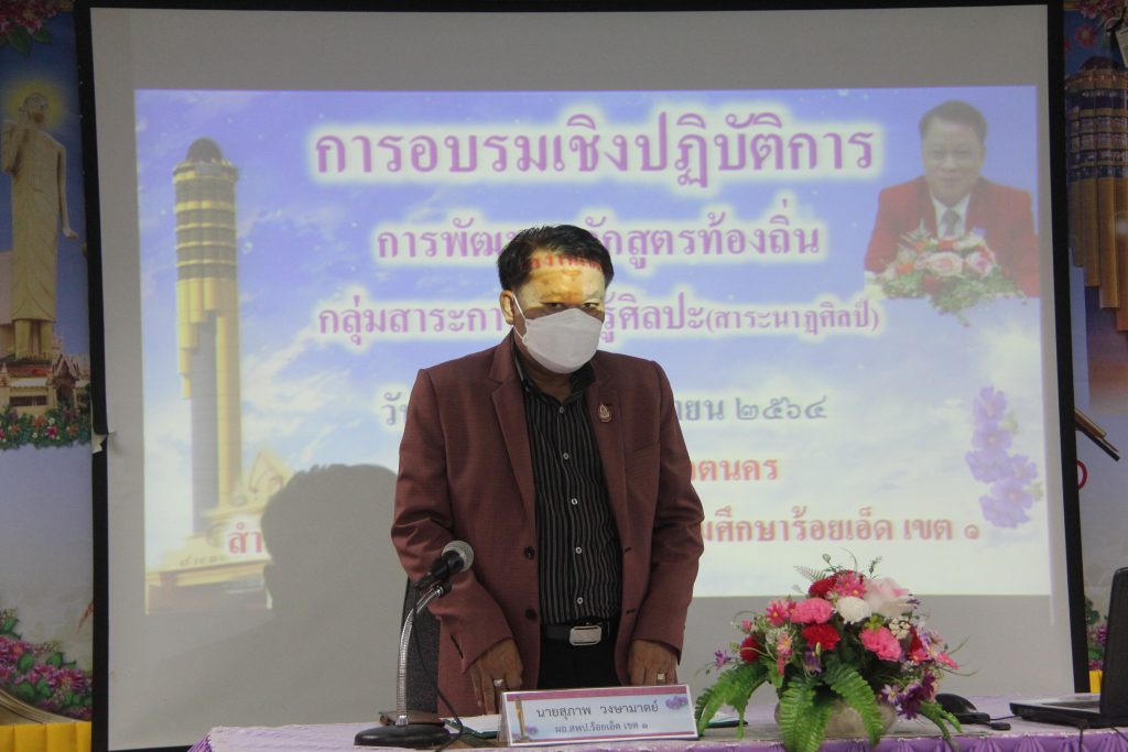 วันที่ 24 กันยายน 2564 เวลา 10.00 น. นายสุภาพ วงษามาตย์ ผอ.สพป.ร้อยเอ็ด เขต 1 เป็นประธานในการเปิดการอบรมเชิงปฏิบัติการ การพัฒนาหลักสูตรท้องถิ่น กลุ่มสาระการเรียนรู้ศิลปะ (สาระนาฎศิลป์) เพื่อขับเคลื่อนการพัฒนาคุณภาพการศึกษา เสริมสร้างศักยภาพครูและบุคลากรทางการศึกษาบนฐานสมรรถนะในศตวรรษที่ 21 ส่งเสริมให้โรงเรียนมีกิจกรรม 1 โรงเรียน 1 ดนตรี 1 กีฬา 1 อาชีพ ส่งเสริมศักยภาพของนักเรียนตามศักยภาพ และความถนัดของนักเรียนรายบุคคล ต่อยอดให้นักเรียนมีทักษะตามที่ สพฐ. กำหนด ทั้งนี้ได้ดำเนินการจัดประชุมตามมาตรการการป้องกันการแพร่ระบาดของโรค COVID 19 อย่างเคร่งครัด ณ ห้องประชุมสาเกตุ สพป.ร้อยเอ็ด เขต 1