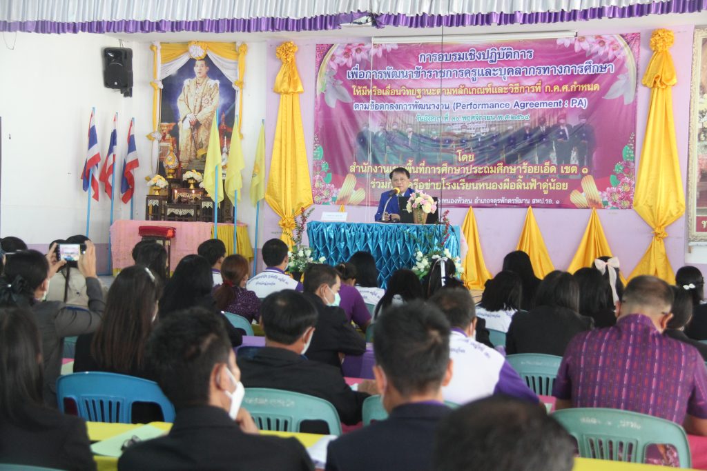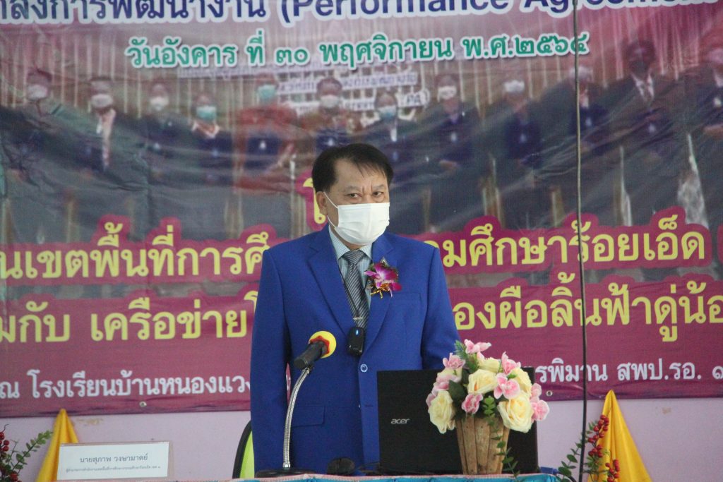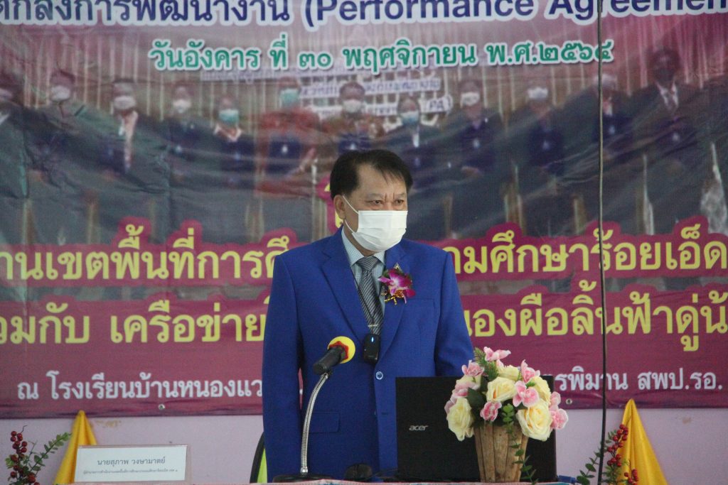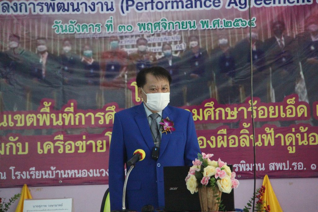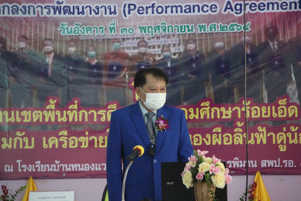 วันที่ 30 พฤศจิกายน 2564 นายสุภาพ วงษามาตย์ ผู้อำนวยการสำนักงานเขตพื้นที่การศึกษาประถมศึกษาร้อยเอ็ด เขต 1 เป็นประธานและบรรยายพิเศษ ในการประชุมเชิงปฏิบัติการข้าราชการครูและบุคลากรทางการศึกษาในการจัดทำข้อตกลงในการพัฒนางาน (Performance Agreement : PA) ของเครือข่ายหนองผือลิ้นฟ้าดู่น้อย อำเภอจตุรพักตรพิมาน จังหวัดร้อยเอ็ด