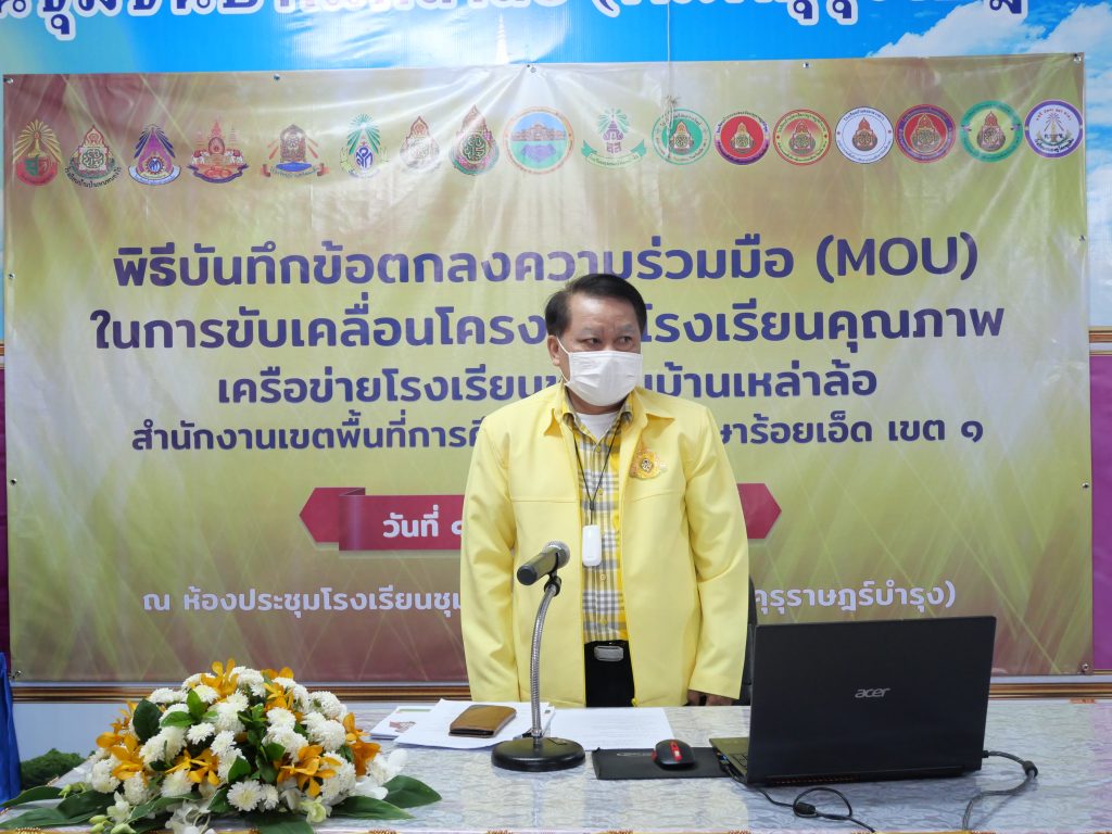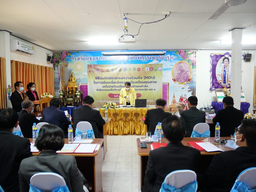 วันที่ 12 มกราคม 2565 นายสุภาพ วงษามาตย์ ผอ.สพป.ร้อยเอ็ด เขต 1 เป็นประธานในการประชุมชี้แจงแนวทางการจัดทำแผนการขับเคลื่อนโรงเรียนคุณภาพและพิธีบันทึกข้อตกลงความมือ (MOU) ในการขับเคลื่อนโรงเรียนคุณภาพระหว่างเขตพื้นที่การศึกษา กับ โรงเรียนคุณภาพ (โรงเรียนชุมชนบ้านเหล่าล้อฯ) และ โรงเรียนเครือข่าย จำนวน 12 โรงเรียน โดยมี รอง ผอ.สพป.ร้อยเอ็ด เขต 1 เป็นพยานในการลงนาม