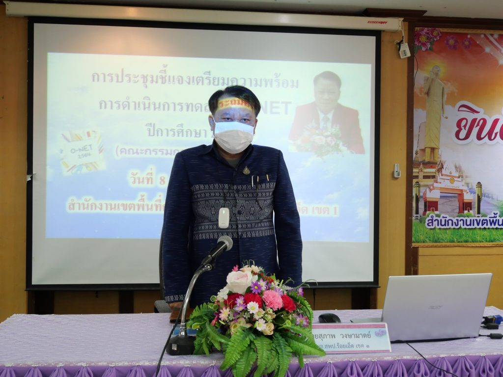 นายสุภาพ วงษามาตย์ ผอ.สพป.ร้อยเอ็ด เขต 1 เป็นประธานการประชุมชี้แจงการเตรียมความพร้อม การดำเนินการทดสอบ O-NET ปีการศึกษา 2564 สำนักงานเขตพื้นที่การศึกษาประถมศึกษาร้อยเอ็ด เขต 1 ซึ่งประกอบด้วย คณะกรรมการระดับศูนย์สอบ และตัวแทนศูนย์สอบจำนวนสนามสอบละ 2 คน มีสนามสอบระดับชั้นประถมศึกษาปีที่ 6 จำนวน 21 สนามสอบ และสนามสอบ ระดับมัธยมศึกษาปีที่ 3 จำนวน 11 สนามสอบ ที่เข้าร่วมประชุมชี้แจง ณ ห้องประชุมสาเกตุ สพป.ร้อยเอ็ด เขต 1