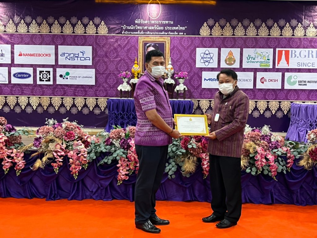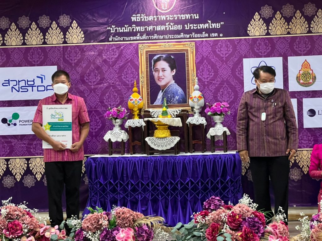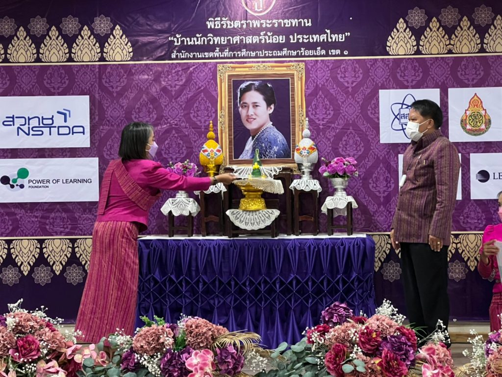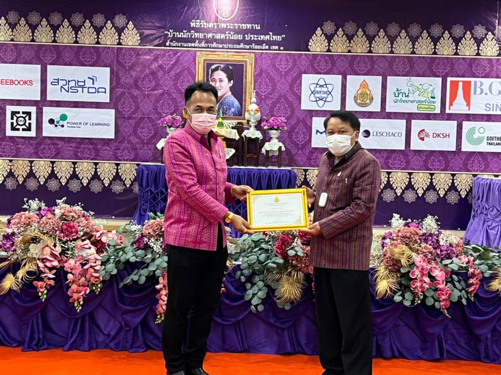 วันศุกร์ที่ 5 สิงหาคม 2565 เวลา 09.00 น. นายสุภาพ วงษามาตย์ ผู้อำนวยการสำนักงานเขตพื้นที่การศึกษาประถมร้อยเอ็ด เขต 1 ประธานในพิธีมอบตราพระราชทาน “บ้านนักวิทยาศาสตร์น้อย ประเทศไทย” ปีการศึกษา 2563 โดยมี นายสุกิจ กลางสุข, นายปริญญา นวลรักษา, นางศิริวรรณ พลเศษ รองผู้อำนวยการสำนักงานเขตพื้นที่การศึกษาประถมศึกษาร้อยเอ็ด เขต 1 ผู้อำนวยการกลุ่มทุกกลุ่ม/หน่วย และศึกษานิเทศก์ และแขกผู้มีเกียรติ ในสังกัดเข้าร่วมในพิธีดังกล่าว ซึ่งโครงการ “บ้านนักวิทยาศาสตร์น้อย ประเทศไทย” เป็นโครงการที่สมเด็จพระกนิษฐาธิราชเจ้า กรมสมเด็จพระเทพรัตนราชสุดาฯ สยามบรมราชกุมารี ทรงพระกรุณาพระราชทานพระราชดำริให้ริเริ่มดำเนินการนำร่องในประเทศไทย โดยได้ทอดพระเนตรตัวอย่างโครงการนี้ คราวเสด็จพระราชดำเนินเยือนประเทศเยอรมนี เมื่อปีพ.ศ. 2552 โดยที่มาของโครงการบ้านนักวิทยาศาสตร์น้อย มาจากการประเมินผลนานาของโครงการ PISA พบว่า ความรู้และทักษะทางวิทยาศาสตร์ของเด็กไทย ยังอยู่ในระดับต่ำกว่าค่าเฉลี่ย อีกทั้งยังขาดแคลนนักวิทยาศาสตร์และวิศวกรที่จะร่วมมือขับเคลื่อนและพัฒนาประเทศ เห็นควรสร้างทัศนคติที่ดีด้านการเรียนรู้ทักษะและกระบวนการทางวิทยาศาสตร์ให้กับเด็กตั้งแต่ระดับปฐมวัย (อายุ 3-6 ปี) เพราะเป็นช่วงอายุที่มีความสามารถในการเรียนรู้และจดจำมากที่สุด ซึ่งโครงการได้รับการสนับสนุนเป็นอย่างดีจากหน่วยงานทั้งภาครัฐและเอกชน เพื่อส่งเสริมการสอนวิทยาศาสตร์และเทคโนโลยี และเป็นแนวทางการพัฒนาการเรียนการสอนวิทยาศาสตร์สำหรับเด็กปฐมวัยอย่างมีคุณภาพและยั่งยืน ในการนี้มีโรงเรียนในสังกัดสำนักงานเขตพื้นที่การศึกษาประถมศึกษาร้อยเอ็ด เขต 1 ได้รับตราพระราชทาน จำนวนทั้งสิ้น 53 โรงเรียน ณ ห้องประชุมโรงแรมเอ็มแกรนด์ จังหวัดร้อยเอ็ด