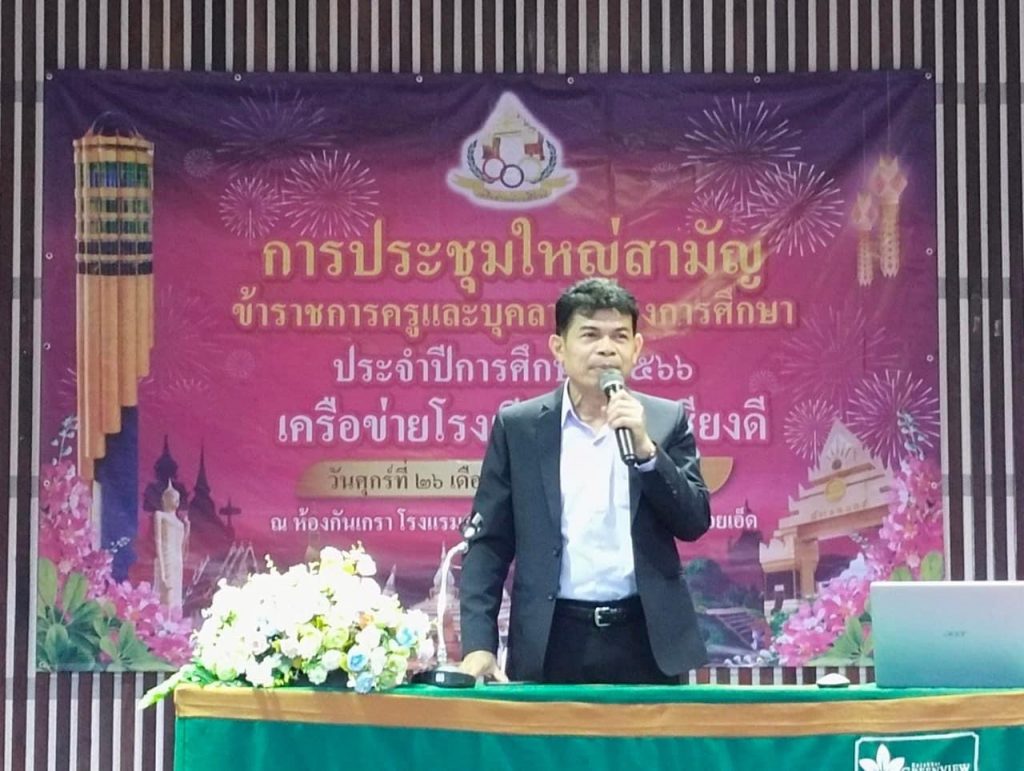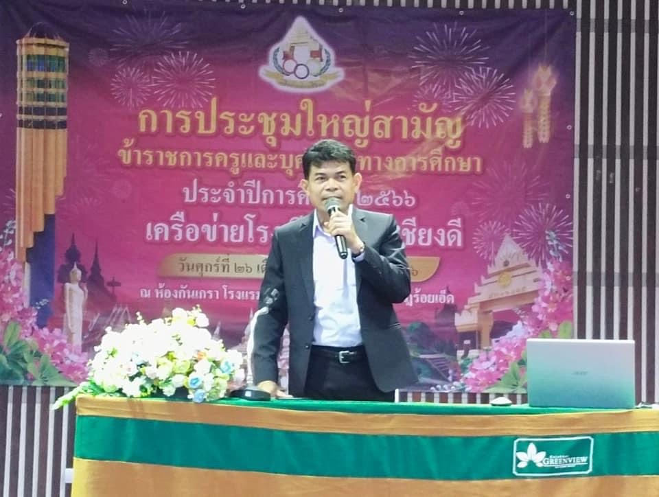 วันที่ 26 พฤษภาคม 2566 เวลา 09.00 น. นายประเสริฐ วรสาร ผอ.สพป.ร้อยเอ็ด เขต 1 เป็นประธานในพิธีเปิดการประชุมใหญ่สามัญประจำปีการศึกษา 2566 ของเครือข่ายเมืองเชียงดี อำเภอธวัชบุรี โดยมีโรงเรียนเข้าร่วมประชุมในครั้งนี้ จำนวน 10 โรงเรียน พร้อมนี้ได้บรรยายพิเศษและมอบนโยบายด้านการศึกษา โดยเฉพาะความปลอดภัยในสถานศึกษาในการเปิดภาคเรียน พร้อมด้วยทีมศึกษานิเทศก์ สพป.ร้อยเอ็ด เขต 1 เป็นวิทยากรให้ความรู้ในด้านต่างๆ ต่อไป ณ โรงแรมราชภัฏกรีนวิว ห้องประชุมมันปลา