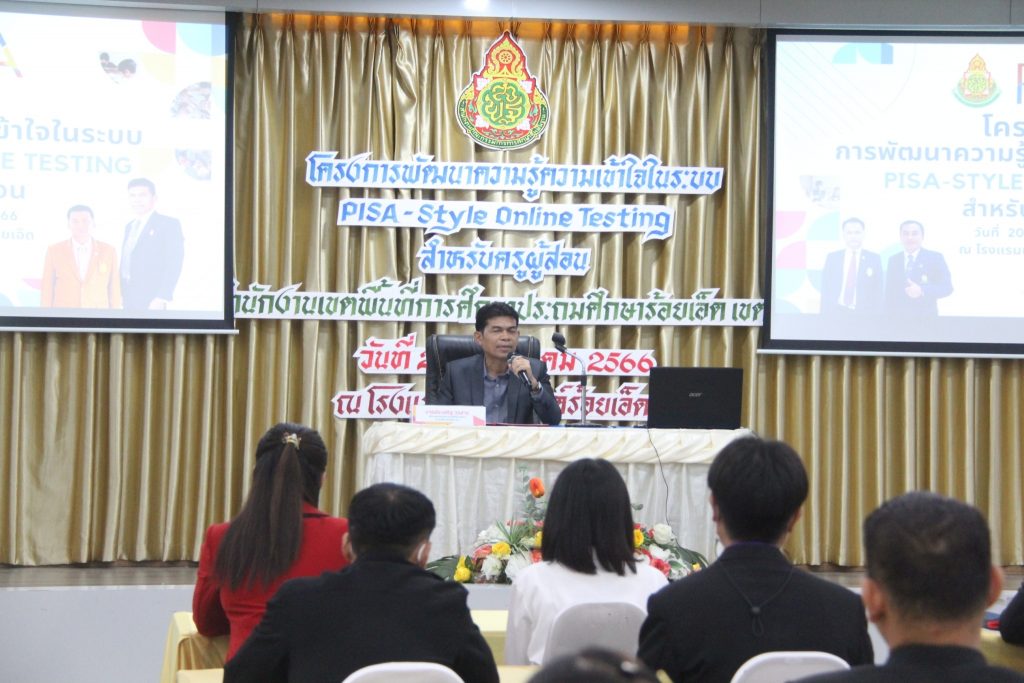 วันที่ 20 กรกฎาคม 2566 เวลา 09.00 น. นายประเสริฐ วรสาร ผอ.สพป.ร้อยเอ็ด เขต 1 เป็นประธานเปิดโครงการการพัฒนาความรู้ความเข้าใจในระบบ PISA – Style Online Testing สำหรับครูผู้สอน ซึ่งเน้นการประเมินสมรรถนะของนักเรียนเกี่ยวกับการใช้ความรู้ และทักษะในชีวิตจริงมากกว่าการเรียนรู้ ตามหลักสูตรในโรงเรียน และยกระดับการจัดการเรียนการสอนให้มีประสิทธิภาพมากยิ่งขึ้น กล่าวรายงาน โดย นายเรืองศิลป์ เห็นชัย ผู้อำนวยการกลุ่มนิเทศติดตามและประเมินผลการจัดการศึกษา ดำเนินโครงการโดยกลุ่มนิเทศติดตามและประเมินผลการจัดการศึกษา ณ ห้องประชุมโรงแรมเอ็มแกรนด์ จังหวัดร้อยเอ็ด