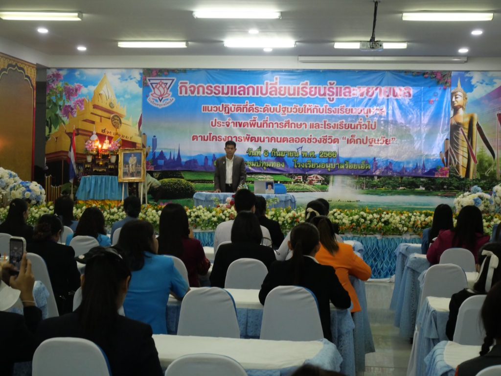 วันที่ 8 กันยายน 2566 เวลา 09.00 น. นายประเสริฐ วรสาร ผอ.สพป.ร้อยเอ็ด เขต 1 เป็นประธานในการเปิดกิจกรรมแลกเปลี่ยนเรียนรู้และขยายผลแนวปฏิบัติที่ดีระดับปฐมวัยให้กับโรงเรียนอนุบาลประจำเขตพื้นที่การศึกษาและโรงเรียนทั่วไป ตามโครงการพัฒนาคนตลอดช่วงชีวิต “เด็กปฐมวัย” ณ ห้องประชุมปทุมทอง โรงเรียนอนุบาล ร้อยเอ็ด