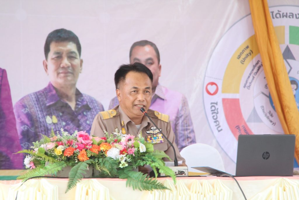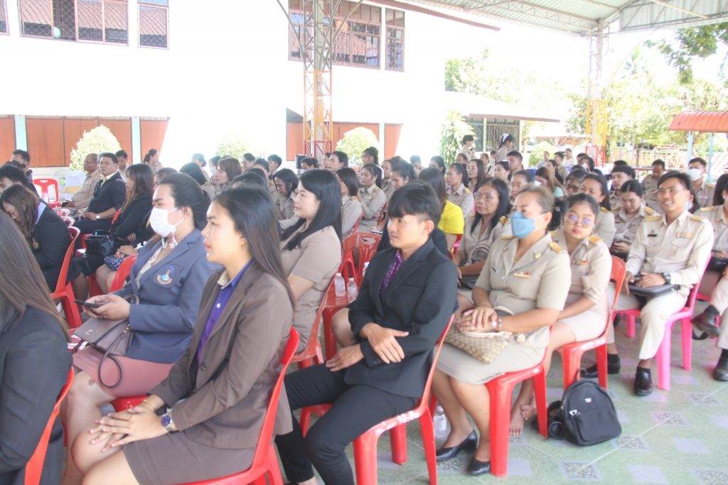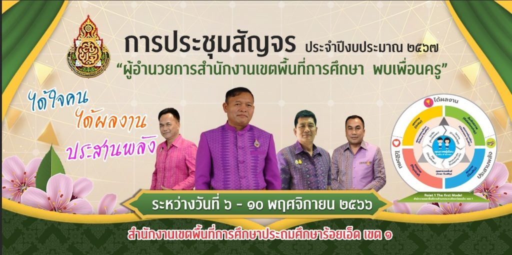 นายสุชาติ พุทธลา ผู้อำนวยการสำนักงานเขตพื้นที่การศึกษาประถมศึกษาร้อยเอ็ด เขต 1 พร้อม นายสุกิจ กลางสุข, นายปริญญา นวลรักษา, นายกิตติภูมิ อุทสาร รองผู้อํานวยการสํานักงานเขตพื้นที่การศึกษาประถมศึกษาร้อยเอ็ด เขต 1 ผู้อำนวยการกลุ่มทุกกลุ่ม ประชุมสัญจรข้าราชการครูและบุคลากรทางการศึกษา ประจำปีการศึกษา 2566 “ผอ.เขต พบเพื่อนครูและบุคลากรทางการศึกษา” ศูนย์ส่งเสริมประสิทธิภาพการศึกษา อำเภอเชียงขวัญ เพื่อพบปะ มอบนโยบายสำนักงานเขตพื้นที่การศึกษาประถมศึกษาประถมศึกษาร้อยเอ็ด เขต 1 และชี้แจงแนวทาง กุลยุทธ์ จุดเน้น บทบาทหน้าที่ รวมทั้งภารกิจที่เกี่ยวข้องในการส่งเสริมพัฒนาและยกระดับคุณภาพการศึกษา ประจำปีการศึกษา 2566 พร้อมแจ้งข้อราชการที่เกี่ยวข้องกับสถานศึกษาเพื่อเป็นแนวปฏิบัติ ทั้งนี้เพื่อสร้างความเข้าใจและร่วมกันขับเคลื่อนพัฒนาคุณภาพการศึกษาอย่างมีประสิทธิภาพ ณ หอประชุมโรงเรียนบ้านหมูม้น อำเภอเชียงขวัญ จังหวัดร้อยเอ็ด