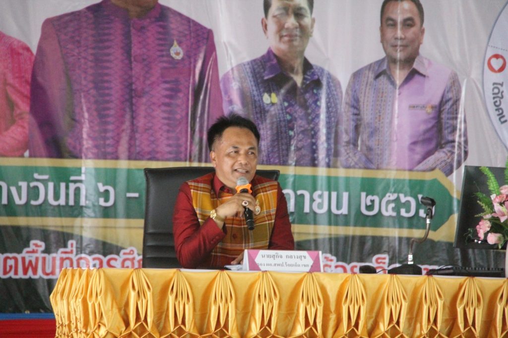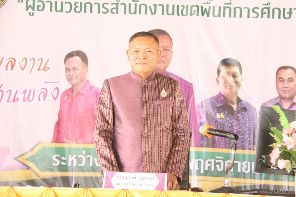 นายสุชาติ พุทธลา ผู้อำนวยการสำนักงานเขตพื้นที่การศึกษาประถมศึกษาร้อยเอ็ด เขต 1 พร้อม นายสุกิจ กลางสุข, นายปริญญา นวลรักษา, นายกิตติภูมิ อุทสาร รองผู้อํานวยการสํานักงานเขตพื้นที่การศึกษาประถมศึกษาร้อยเอ็ด เขต 1 ผู้อำนวยการกลุ่มทุกกลุ่ม ประชุมสัญจรข้าราชการครูและบุคลากรทางการศึกษา ประจำปีการศึกษา 2566 “ผอ.เขต พบเพื่อนครูและบุคลากรทางการศึกษา” ศูนย์ส่งเสริมประสิทธิภาพการศึกษา อำเภอทุ่งเขาหลวง เพื่อพบปะ มอบนโยบายสำนักงานเขตพื้นที่การศึกษาประถมศึกษาประถมศึกษาร้อยเอ็ด เขต 1 และชี้แจงแนวทาง กุลยุทธ์ จุดเน้น บทบาทหน้าที่ รวมทั้งภารกิจที่เกี่ยวข้องในการส่งเสริมพัฒนาและยกระดับคุณภาพการศึกษา ประจำปีการศึกษา 2566 พร้อมแจ้งข้อราชการที่เกี่ยวข้องกับสถานศึกษาเพื่อเป็นแนวปฏิบัติ ทั้งนี้เพื่อสร้างความเข้าใจและร่วมกันขับเคลื่อนพัฒนาคุณภาพการศึกษาอย่างมีประสิทธิภาพ ณ หอประชุมโรงเรียนบ้านจาน อำเภอทุ่งเขาหลวง จังหวัดร้อยเอ็ด