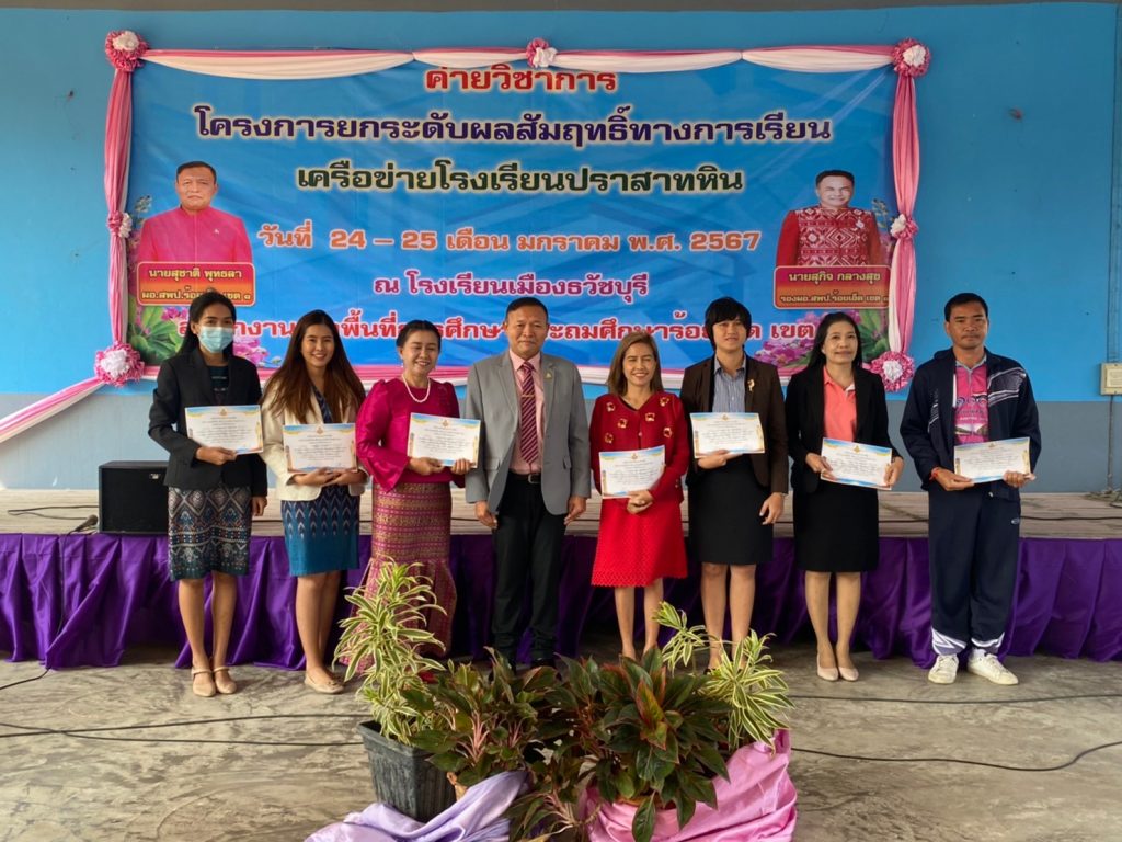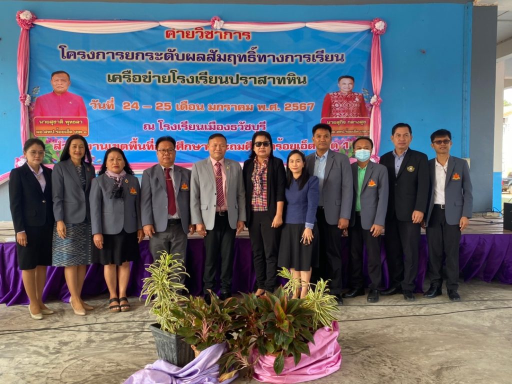 วันที่ 24 มกราคม พ.ศ. 2567 นายสุชาติ พุทธลา ผู้อำนวยการสำนักงานเขตพื้นที่การศึกษาประถมศึกษาร้อยเอ็ด เขต 1 เป็นประธานเปิดโครงการยกระดับผลสัมฤทธิ์ทางการเรียน O – NET ปีการศึกษา 2566 ของเครือข่ายโรงเรียนปราสาทหิน เพื่อยกระดับผลสัมฤทธิ์ทางการเรียนปีการศึกษา 2566 นักเรียนชั้นประถมศึกษาปีที่ 6 และมัธยมศึกษาปีที่ 3 ให้สูงขึ้น ณ โรงเรียนเมืองธวัชบุรี และโรงเรียนชุมชนบ้านยางกู่ อำเภอธวัชบุรี จังหวัดร้อยเอ็ด